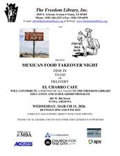 EL CHARRO CAFE will contribute a portion of all sales to The Freedom Library Education and Scholarship Program