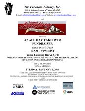 Yuma Landing Bar & Grill Restaurant will contribute a portion of ALL sales to The Freedom Library Education and Scholarship Program. Come out and support Liberty with your appetite Breakfast, lunch, and/or dinner.