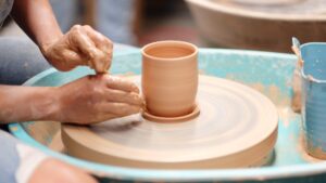 Come join us for a clay pottery wheel workshop! Our Try-it class is for true beginners to learn the basics of throwing on the wheel. We will show you how to center, form a small bowl/cup/vessel & wheel cleanup/care. The cost of the class does NOT include firing of pottery. If you don’t love what you create, no worries- you tried a new skill. Our goal is that you will want to keep at least one piece that you make! You can make up to 4 pieces, any that you choose to keep will be $15 each- this includes the bisque firing, your return visit to paint your piece & the final glaze firing. These pieces will be available to paint approximately 14 days after the workshop. All fired pottery will be kept maximum of 30 days after its first firing. You can return to glaze it at any open studio time Friday thru Sunday. Glazed pieces are ready 7 days after painting.
