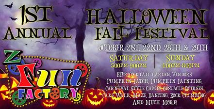 Z Fun Factory is hosting its first annual Fall Festival! There will be vendors, photo areas, pumpkin patch, rock climbing, a wipeout course, bounce houses, a Halloween themed movie, tons of games, a beer/cocktail garden, DJ/ live entertainment, plenty of food, and more! Entry is only $3 for anyone under 12 years old and $5 for anyone older than 12!